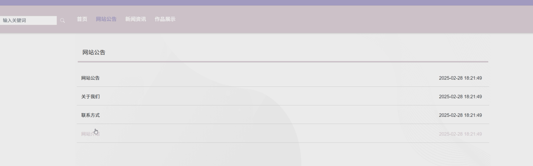 管理员登录后进入后台页面,可查看作品展示类型。界面如图5-5所示。