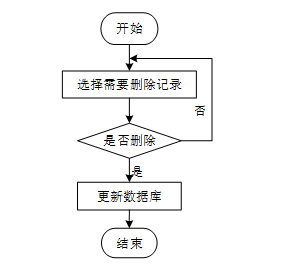 用户选择需要删除的记录后,系统判断是否确认删除。若未确认,返回选择环节;若确认删除,则更新数据库,删除对应记录,完成操作后流程结束。删除信息流程图如图3-8所示。