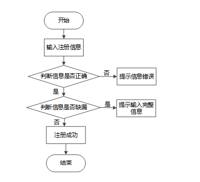 未有账号的用户可进入注册界面进行注册操作,填写注册表格,包括用户名、密码、电子邮件等必要信息。后台系统验证并保存用户提交的信息。分配唯一用户标识符。注册成功后,用户可以使用账号密码进行登录。用户注册流程图如下图所示。
