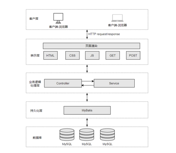 系统基于SpringBoot框架进行开发,整体架构分为VIEW层、Controller层、Model层、DAO层以及数据持久化层。VIEW层支持通过计算机浏览器访问系统,与Controller层密切协作,共同实现前端页面的数据展示。Controller层作为控制层,负责接收前端发送的请求参数并进行业务逻辑处理,随后返回相应的路径或数据。Model层则主要承担服务层的功能,负责业务逻辑的处理与执行。DAO层及持久化数据存储层则专注于与数据库的交互,确保数据的持久化存储。整个系统架构如图4-1所示。
