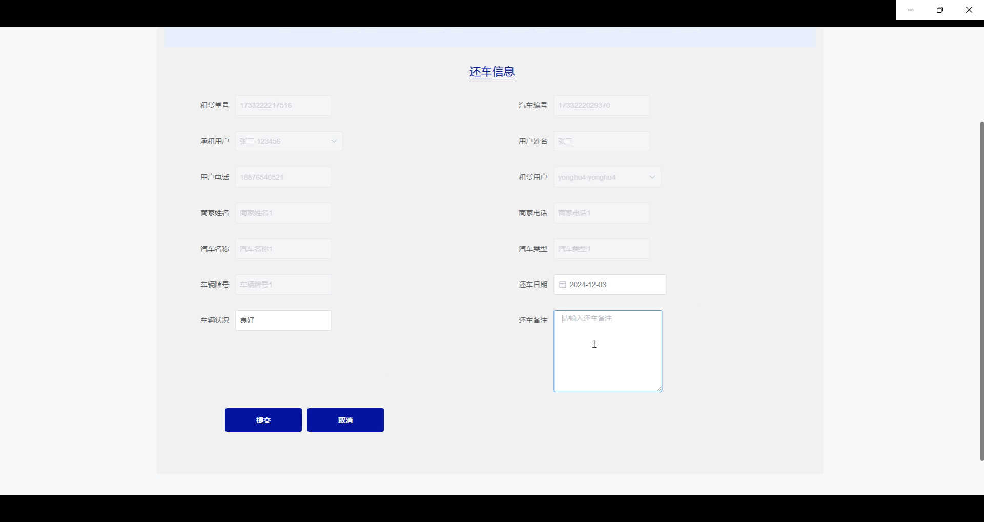 | 3 | 汽车还车 | 尝试归还未到期租赁的车辆 | 还车失败,提示租赁未到期 |