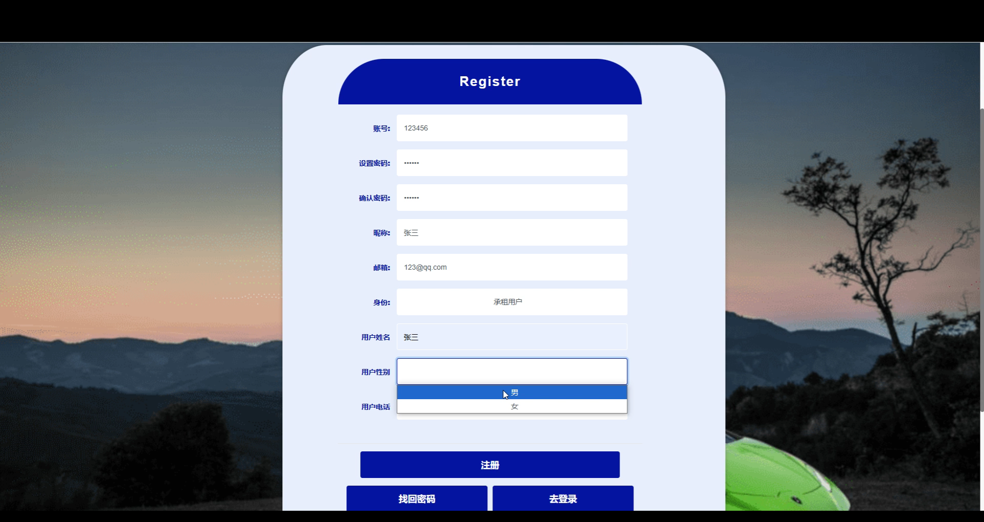 | 1 | 用户注册 | 输入正确的用户名和密码 | 注册成功,提示注册完成 |