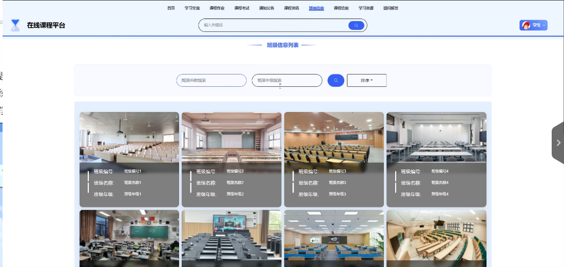 - 班级信息管理:提供班级信息列表、查询、重置、删除、详情、查看评论、班级信息添加等功能。教师可以轻松管理班级信息,确保教学秩序井然有序。