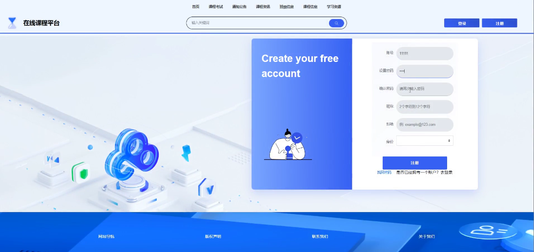- 登录:提供登录、注册、忘记密码等服务。教师用户可以通过前端界面登录,与学生进行学习交流,体验便捷的在线教育互动体验。同时,教师也可以通过后端系统登录,进行课程管理和其他教学活动。