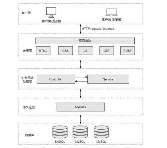 B/S架构通常采用Web技术进行实现,包括HTML、CSS和JavaScript等。用户在浏览器中发起请求,服务器响应并返回数据。数据传输通常通过HTTP或HTTPS协议进行,B/S架构的灵活性使其适用于在线购物、信息管理系统和社交网络等各类应用场景[4]。由于其易于扩展性,B/S架构可以方便地支持大规模用户访问,适应不断变化的业务需求。