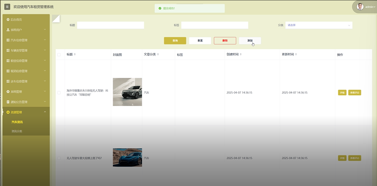 汽车资讯:用户可以在系统中浏览与汽车租赁相关的资讯,如汽车市场动态、车型推荐、租赁技巧等。