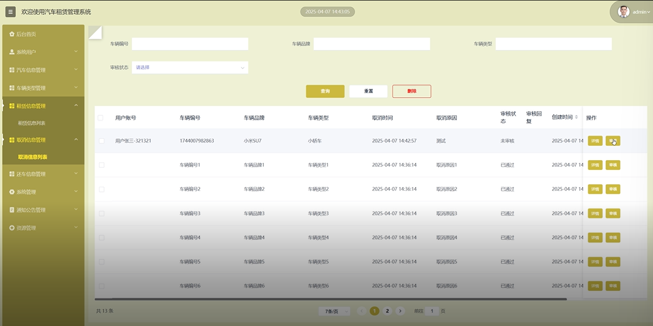 取消信息管理:管理员可以查看用户的取消申请并做出相应处理,包括是否批准取消、是否退还押金等。