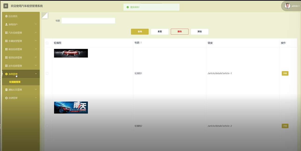 轮播图管理:轮播图管理模块帮助管理员更新平台首页的广告或活动图片,吸引用户的注意力。管理员可以根据实际需求设置轮播图的内容。