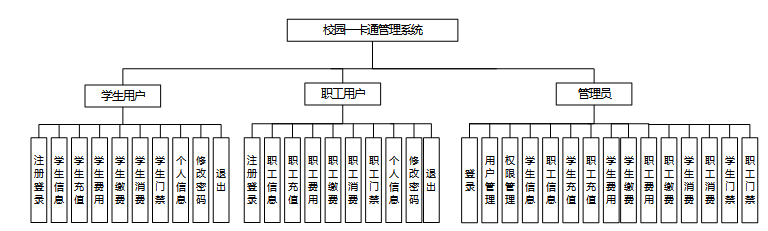 校园一卡通管理系统需支持多角色用户(学生、职工、管理员)的基本操作,包括注册登录、个人信息查看与修改及密码管理。核心功能涵盖充值、缴费、消费记录和门禁控制等方面,要求系统能够处理学生和职工的账户余额管理、费用缴纳流程,并记录所有相关的财务交易信息。此外,管理员应具备全面管理权限,包括用户信息审核、权限设置、以及对充值、缴费、消费和门禁记录的增删改查操作。系统还需确保数据的安全性和隐私保护,提供稳定高效的服务,以满足校园日常管理和便捷生活的需求。具体描述如下: