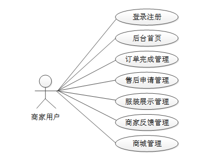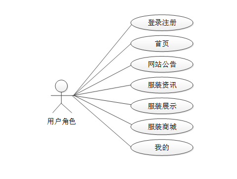 系统的用例展示的是系统功能与用户之间的关系,通过用例的方式能够直观的展示出来,本基于微信小程序的服装推荐系统的完整UML用例图如下所示。