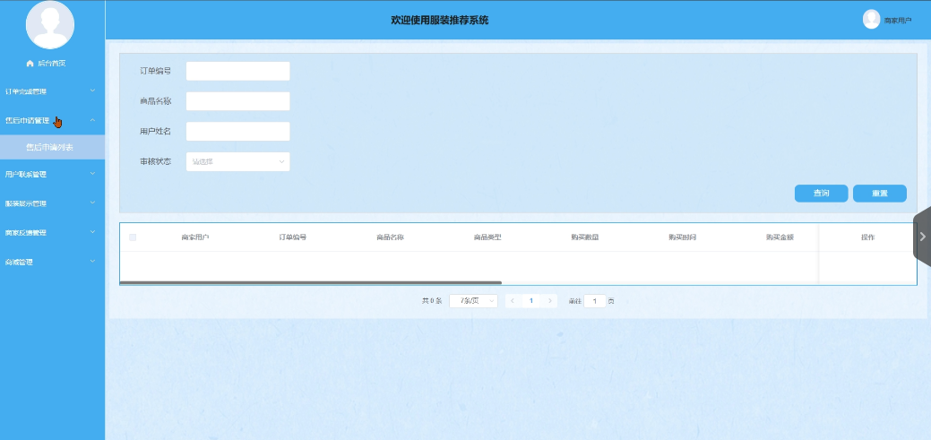 售后申请管理:商家用户可以查看和管理售后申请列表,审核、回复用户的售后申请。