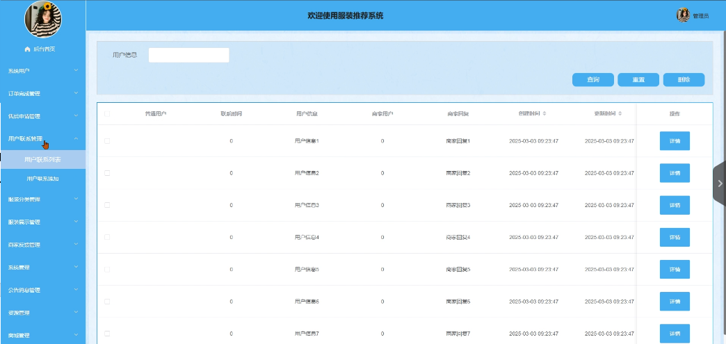 用户联系管理:管理员可以查看、编辑用户联系列表,也可以添加新的用户联系信息。