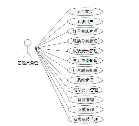 后台首页:管理员含有的功能有后台首页、系统用户、服装分类管理、服装展示管理、售后申请管理、用户联系管理、系统管理(轮播图管理)、网站公告管理、资源管理(服装资讯、资讯分类)等功能。