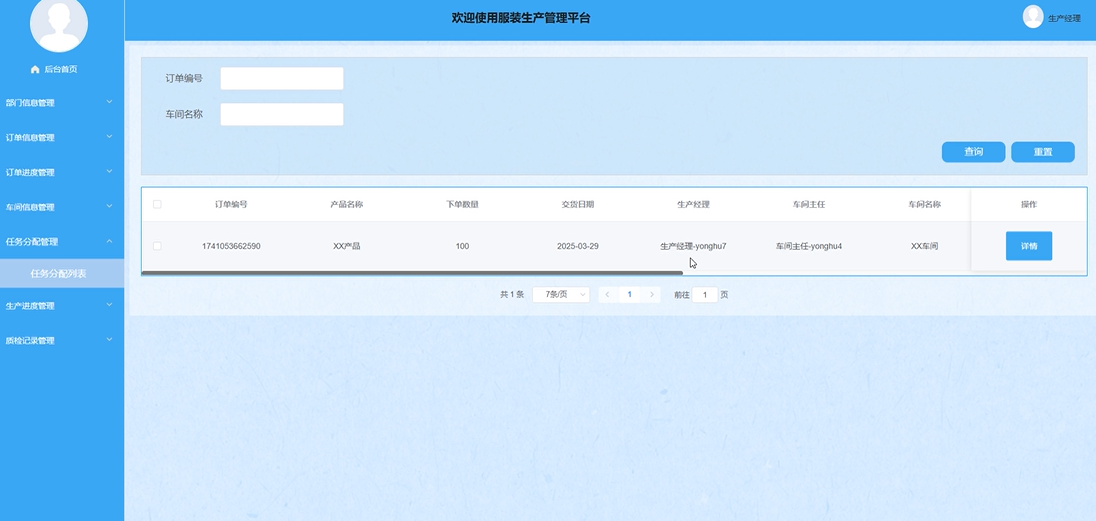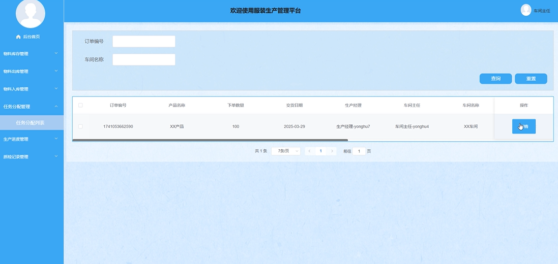 在车间内部进一步分配生产任务,根据员工的技能水平、工作负荷等因素,将生产任务细化到各小组或员工,明确各小组或员工的工作内容、工作量和完成时间节点。任务分配管理界面如下图所示。