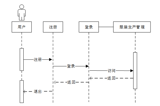 管理员输入登录信息后,登录界面将信息传递至生产经理管理界面,随后通过SpringBoot框架读取数据库中的用户信息并返回。系统验证信息,若验证成功则登录成功,若验证失败则返回错误提示。登录时序图如图4-4所示。