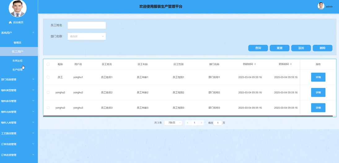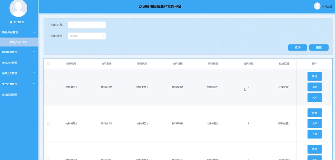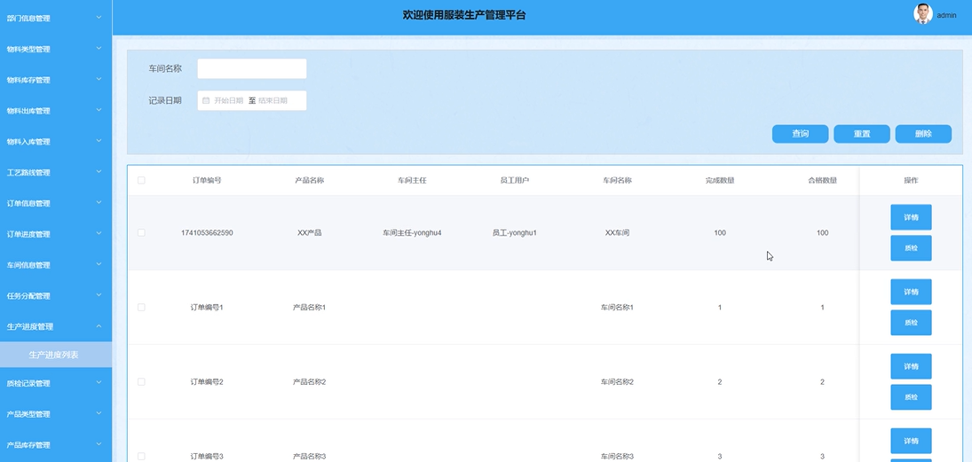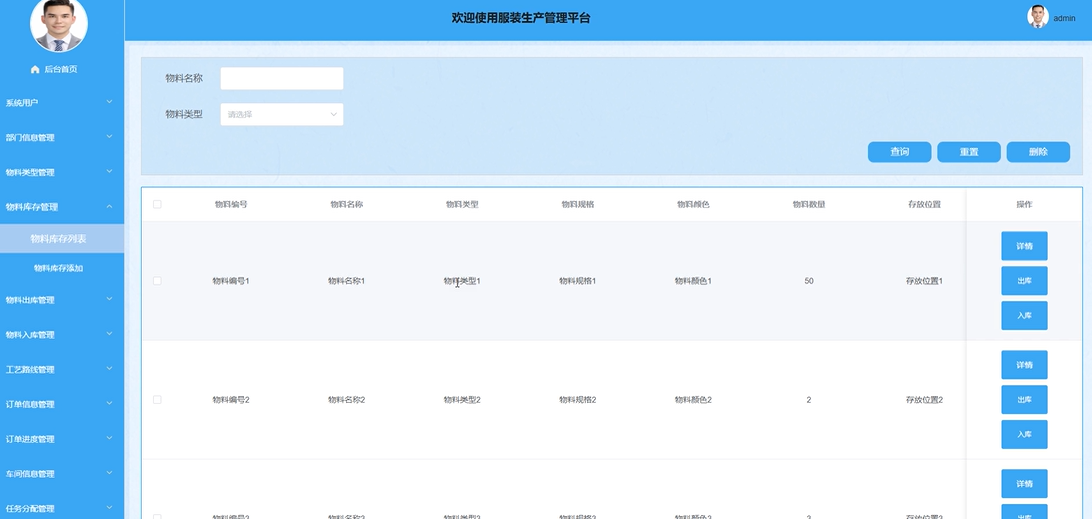 基于SpringBoot+Vue的服装生产管理平台,有效提升了服装生产企业的管理效率和生产质量,降低了生产成本,增强了企业的市场竞争力,推动了服装产业的信息化发展。