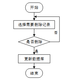 用户选择需要删除的记录后,系统判断是否确认删除。若未确认,返回选择环节;若确认删除,则更新数据库,删除对应记录,完成操作后流程结束。删除信息流程图如图3-8所示。