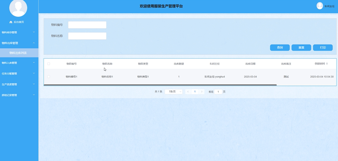 The garment production management platform based on SpringBoot + Vue has effectively improved the management efficiency and production quality of the garment production enterprises, reduced the production cost, enhanced the market competitiveness of the enterprises, and promoted the information development of the garment industry.