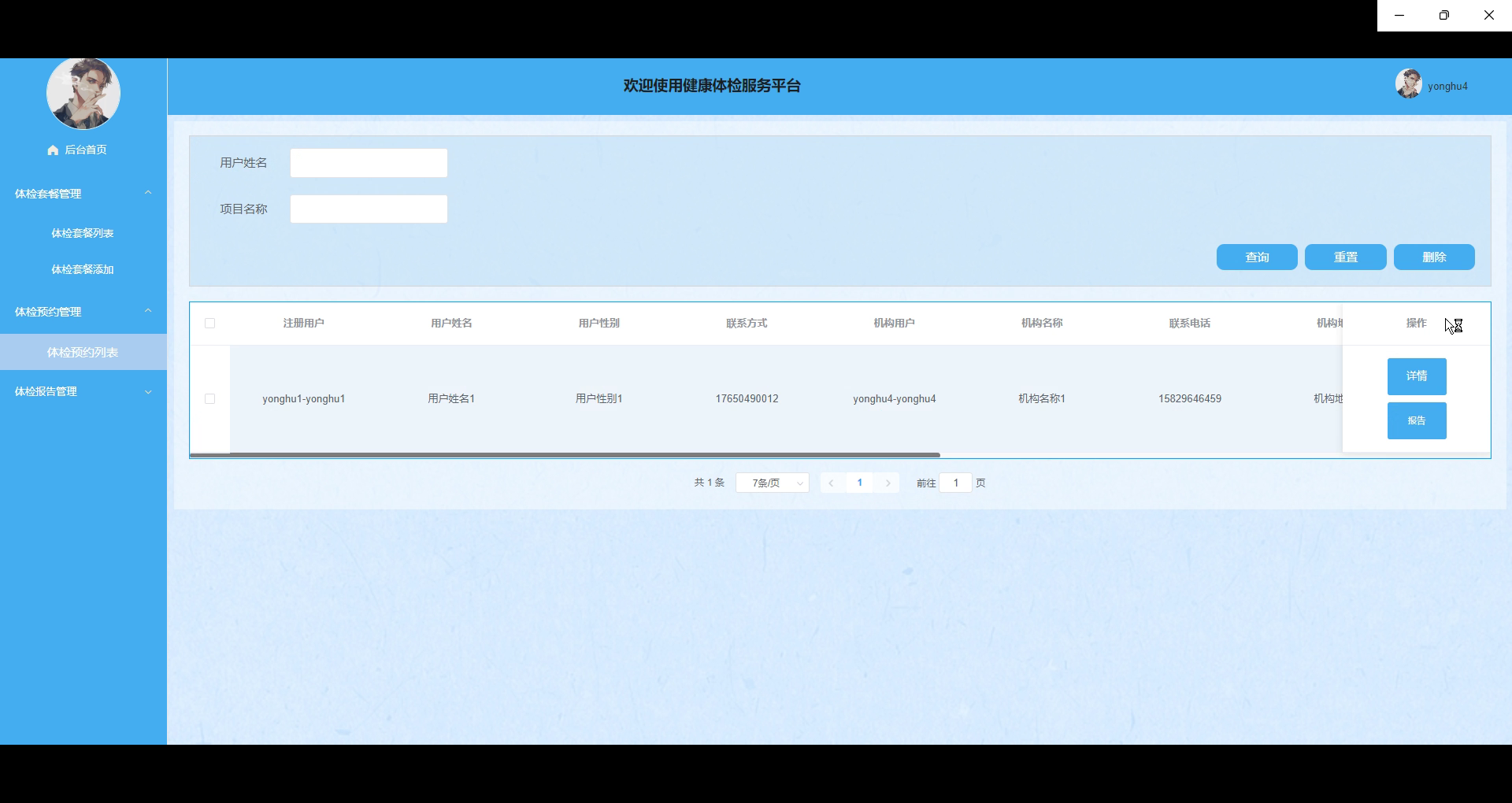 The platform aims to enhance the accessibility and convenience of medical examination services, provide users with an efficient and transparent medical examination service experience, and optimize the operation and management of medical examination institutions. Through intelligent appointment and report management, the platform not only enhances user experience, but also promotes the digital transformation of health management. It is expected that the system will effectively improve the quality and efficiency of physical examination services after promotion, and become an important tool in the field of health management.