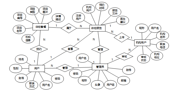 设计了用户表、预约记录表、体检报告表、体检套餐表等多个核心表格,通过合理的数据关联,确保平台操作的流畅性和数据的准确性与一致性。