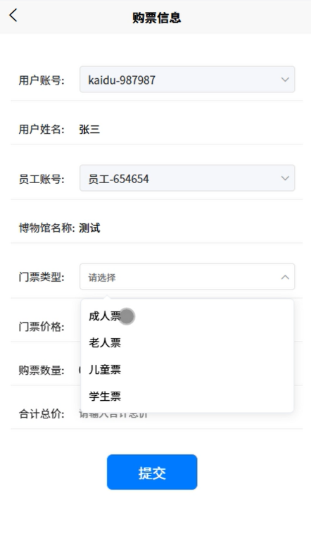 用户可以通过系统进行在线购票,选择参观日期和票种,完成支付流程。系统支持多种支付方式,确保购票过程安全便捷,用户可以随时查看购票记录和订单状态。进行在线购票界面如图5-4所示。