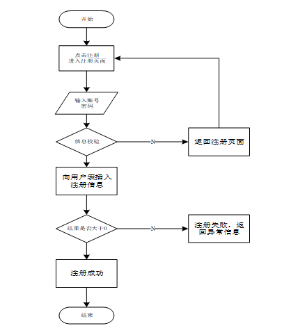 注册的过程,第一部分是账号的注册,第二部分是信息完善。在业务开展过程中,管理员可对用户信息进行修改等管理操作,注册流程如图3-3用户注册流程图所示。