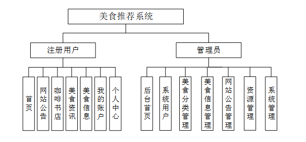 本系统旨在满足美食信息的多样化运营需求,针对注册用户和管理员两大角色提供全面的功能支持。注册用户可通过系统实现商品浏览、购物车管理、书籍租借及个人中心操作,享受便捷的消费体验;管理员则负责后台数据维护、订单审核、库存管理和系统配置等任务,确保书店高效运营。通过功能模块的精细化设计,系统实现了业务流程的自动化与智能化,为美食信息的数字化转型提供了技术支持。具体描述如下: