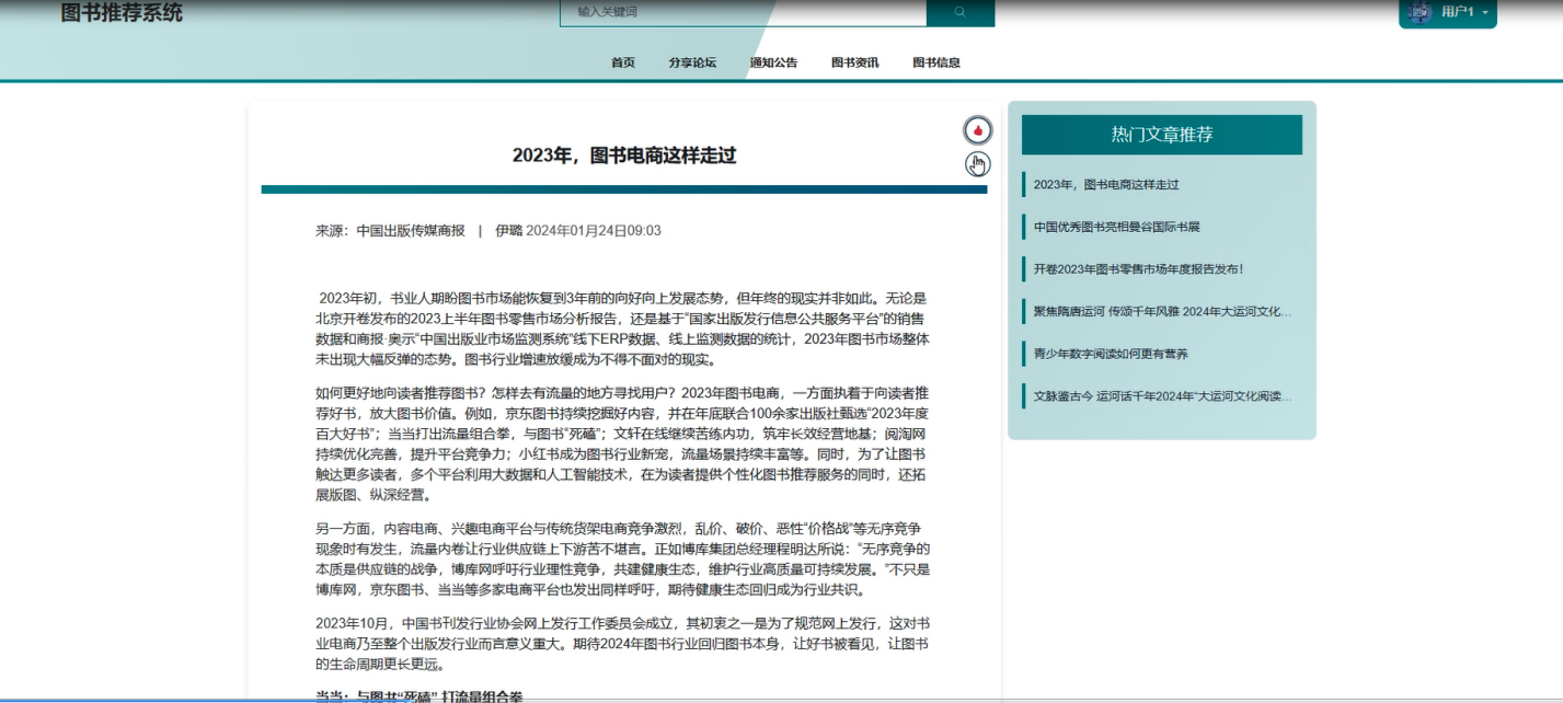 图书资讯:用户可以查看行业动态、 图书相关资讯等内容,丰富用户知识。支持资讯分类,可以进行点赞收藏等。