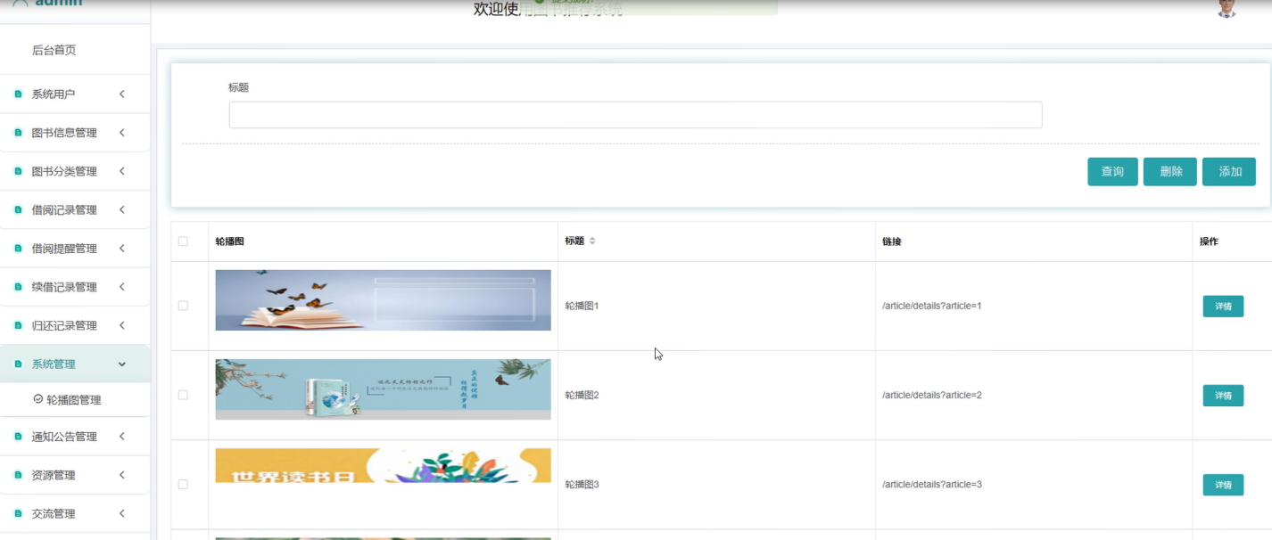 系统管理:管理员配置首页轮播图内容,支持图片上传和链接设置。