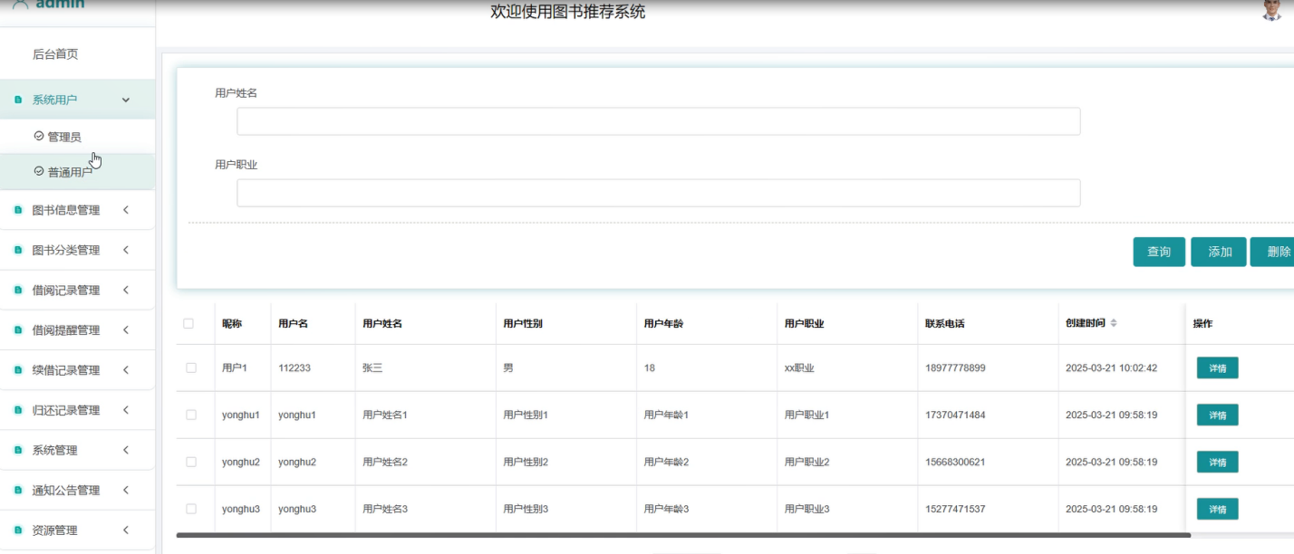该系统基于Python语言开发,采用Django框架构建,并使用MySQL作为数据库管理系统,旨在为企业提供高效、可靠且易于扩展的图书推荐系统解决方案。系统集成了普通用户管理和用户权限管理等功能模块,通过详细的图书信息添加、借阅记录管理、归还记录管理等功能,方便用户管理图书系统。