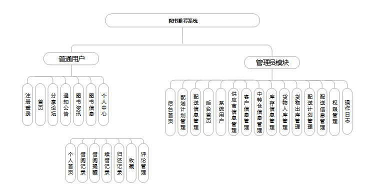 基于Django的图书推荐系统通过不同角色的功能模块,实现对图书系统的全面管理[9]。普通用户和管理员各自的功能模块互相配合,共同构建了一个高效、透明的图书推荐系统体系。通过详细分析这些功能模块,可以更好地了解和实施图书推荐系统,提高图书推荐系统的效率和准确性。具体功能分析如下: