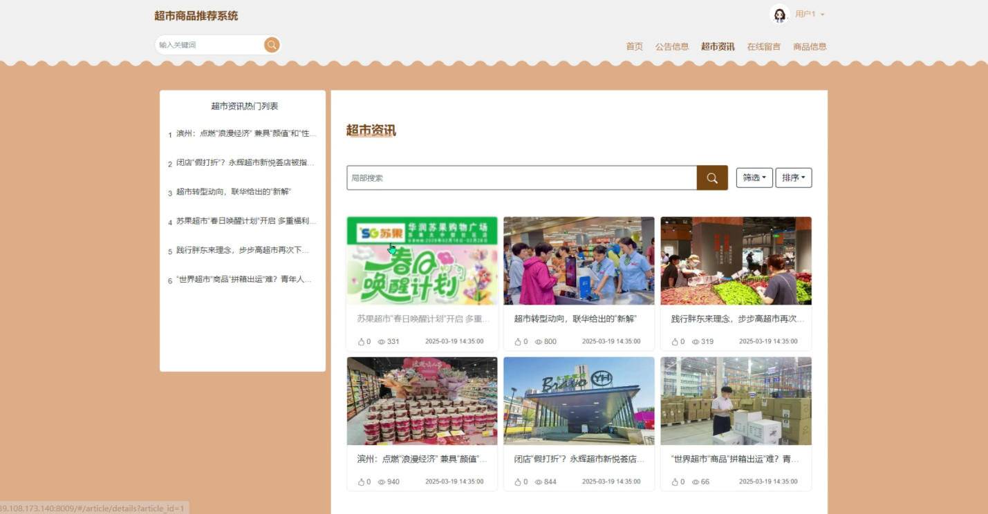 (3)超市资讯:用户可以在超市资讯查看与超市相关新闻、促销活动等信息。