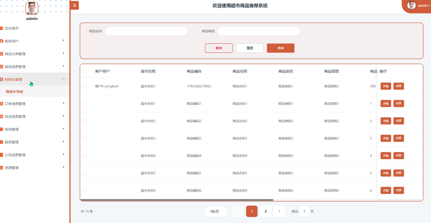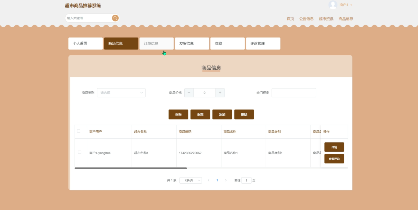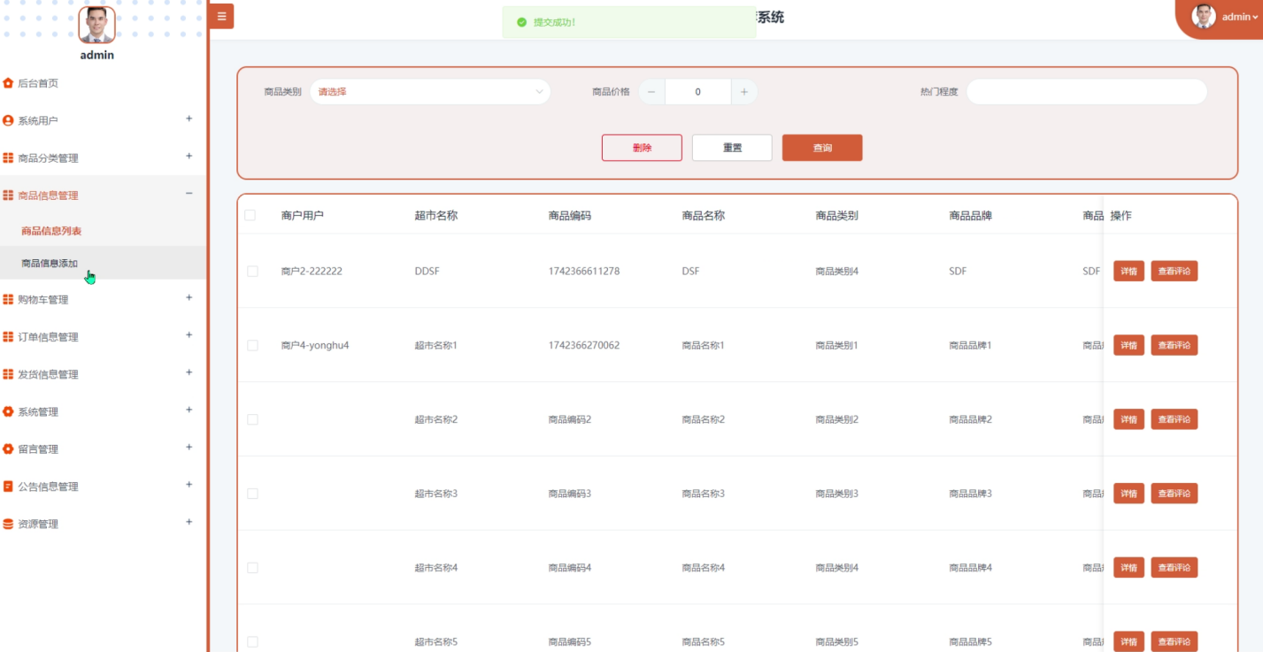 (5)商品信息:用户可以浏览超市提供的所有商品详情。