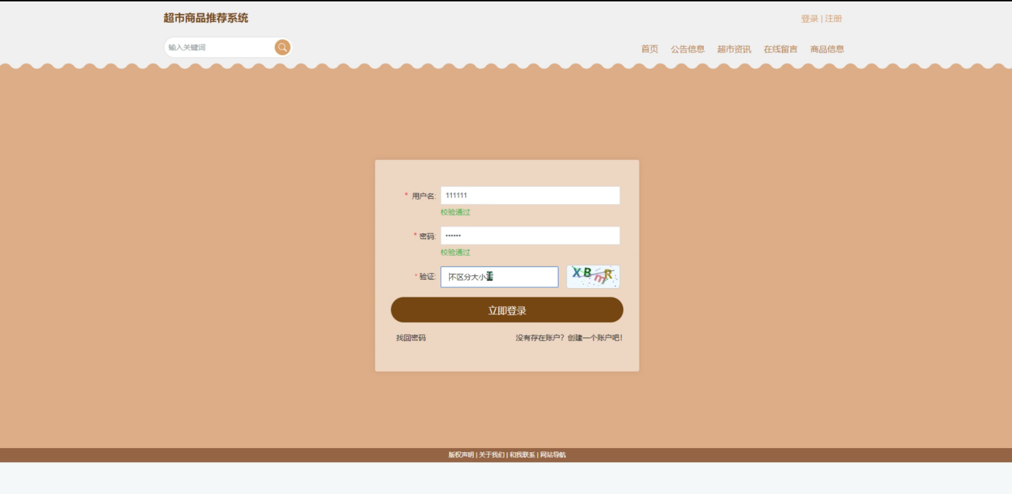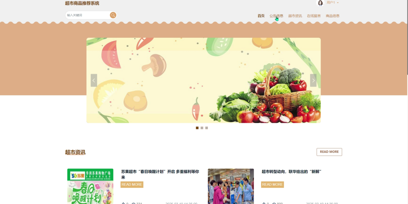 (2)公告信息:用户可以通过公告信息栏了解系统或超市的重要通知。