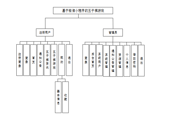 基于微信小程序的五子棋游戏包含注册用户、管理员两个角色划分,每个角色对应的主要功能如下: