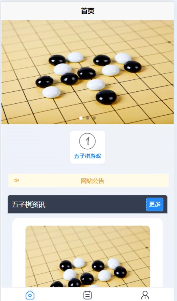 - 首页:展示轮播图、网站公告、五子棋资讯、五子棋游戏入口等。