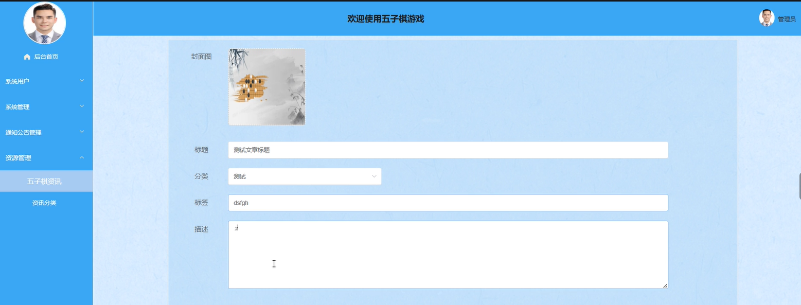 | 目的 | 测试管理员添加五子棋资讯功能 |