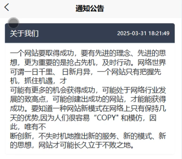 (4)通知公告:主要展示系统发布的公告信息,注册用户查看具体公告信息。