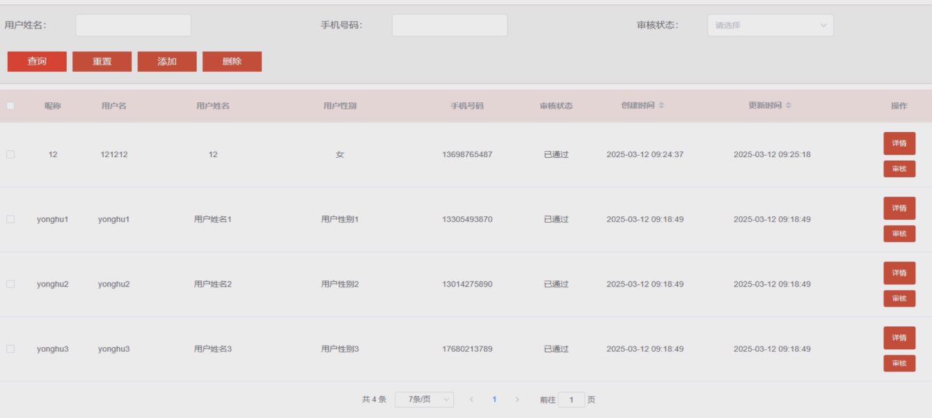 管理员对平台上的用户账户进行集中管理。管理员可以审核、添加、编辑或删除用户信息。系统用户界面如图5-8所示。
