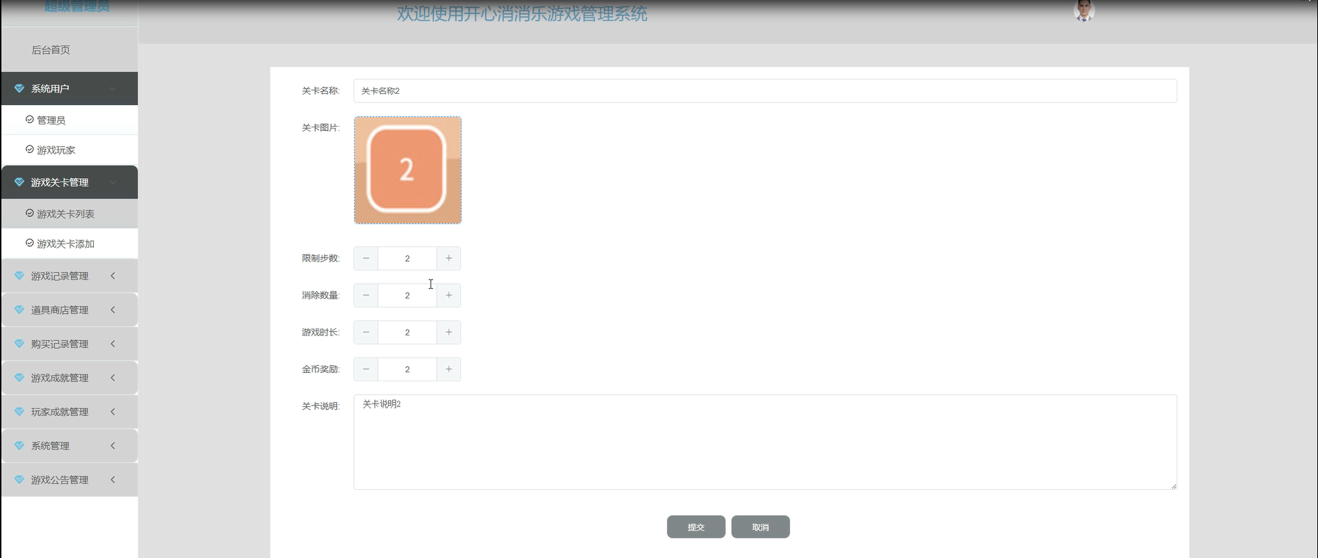 游戏关卡管理:管理员负责管理游戏关卡的设置,包括查看、添加、编辑和删除关卡信息,确保游戏内容的多样性和挑战性。