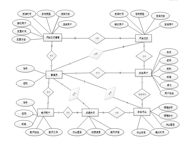 以下将展示系统的全局E-R图。系统全局E-R图如图4-6所示。