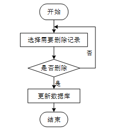 用户选择需要删除的记录后,系统判断是否确认删除。若未确认,返回选择环节;若确认删除,则更新数据库,删除对应记录,完成操作后流程结束。删除信息流程图如图3-9所示。