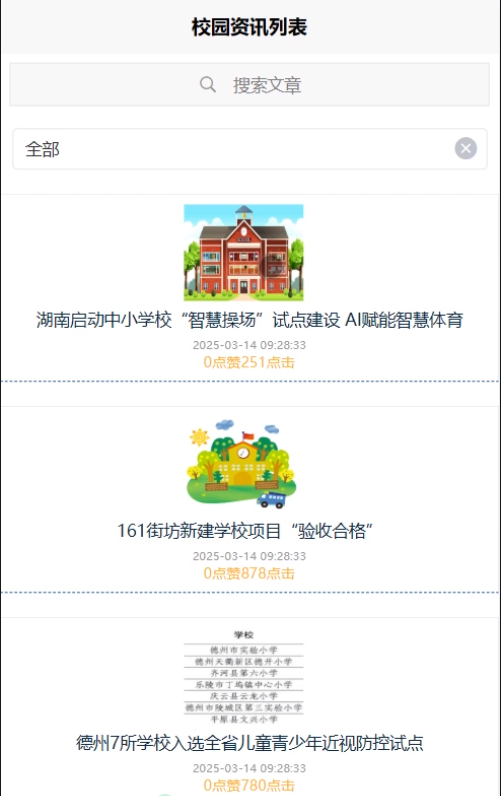 | 查看校园资讯测试 | 学生用户登录系统 进入校园资讯页面 浏览封面图片、标题、内容等信息。 | 无 | 符合预期 |