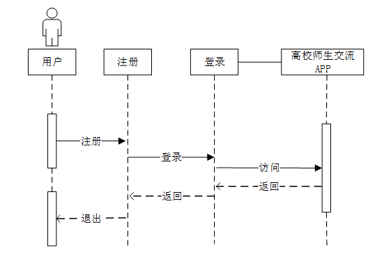 用户通过注册模块发送注册请求,系统完成注册后返回确认信息。随后,用户通过登录模块发送登录请求,系统验证用户信息后允许访问目标系统。用户完成操作后可选择退出,系统终止会话。注册时序图,如图4-2所示。