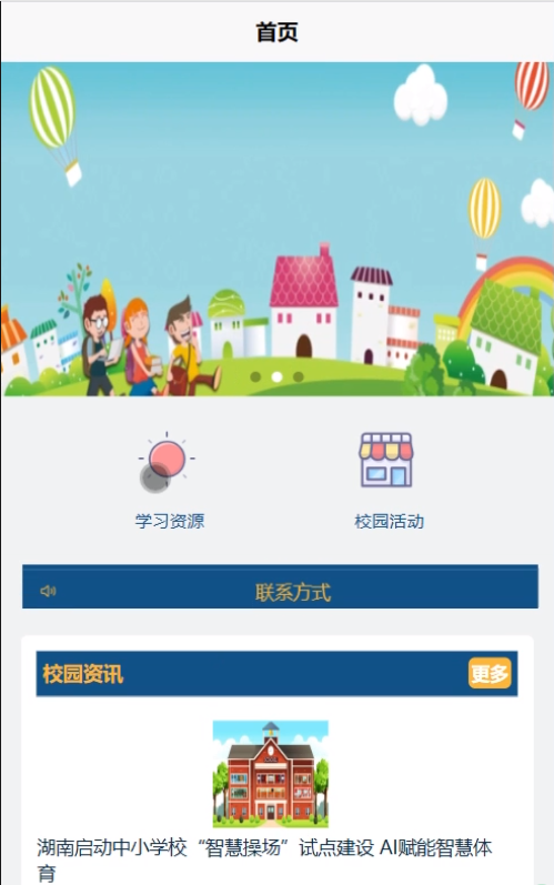 用户通过首页可以查看轮播图、学习资源、校园活动、校园资讯等信息并进行相关操作。例如点击“学习资源”进入页面可以查看学习资源列表中某个学习资源的详情。首页界面如图5-9所示。