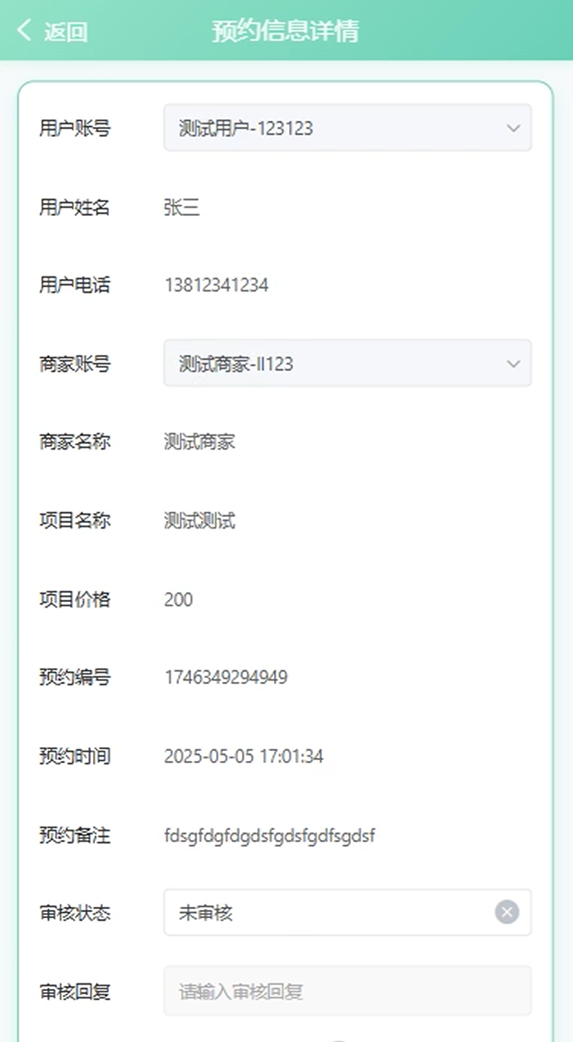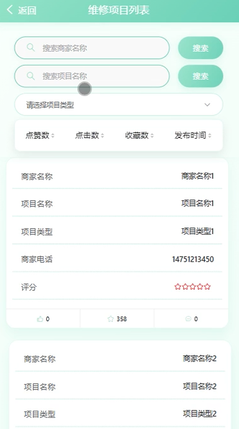 商家可以查看和管理维修项目的详细信息,包括项目名称、类型、详情等。商家可以上传、编辑和删除维修项目,方便用户进行预约。其界面图如下。