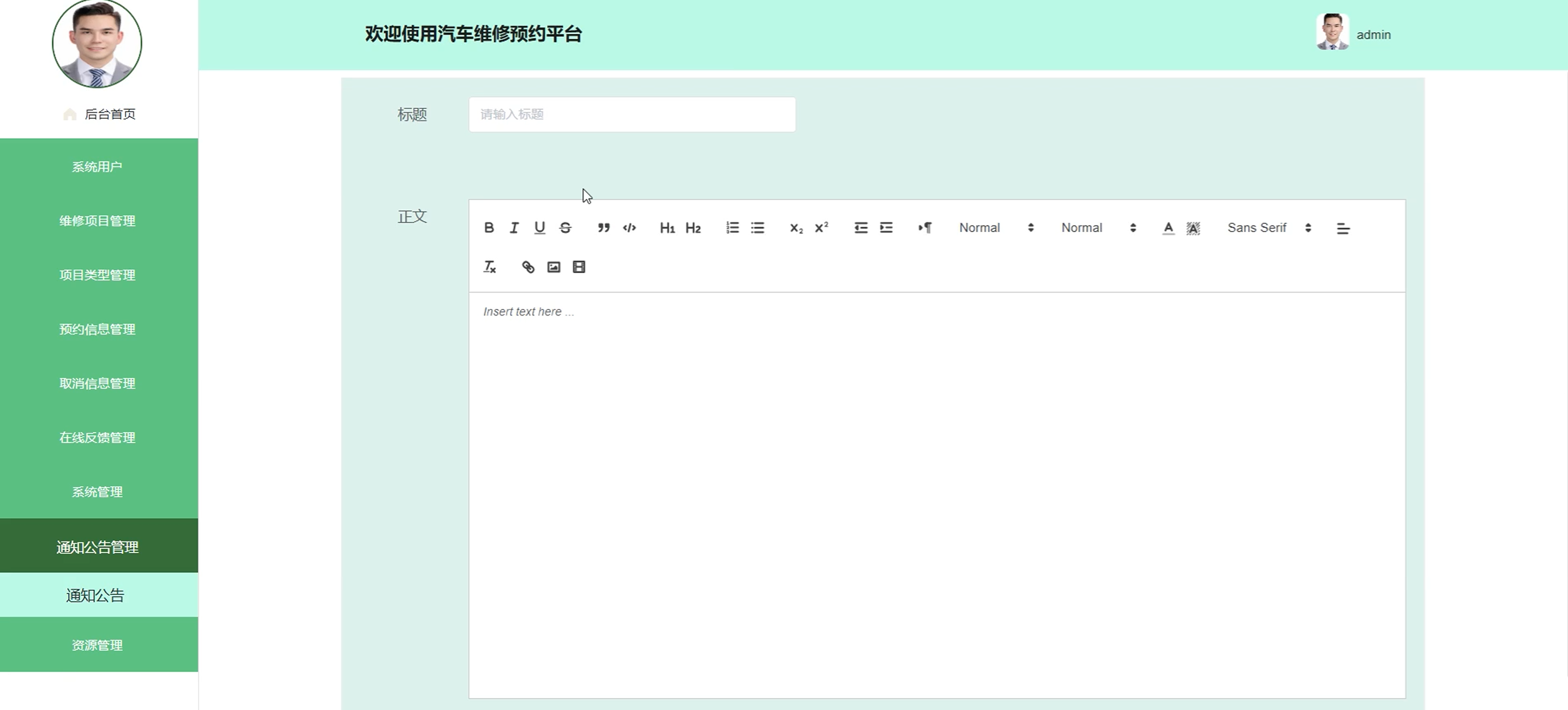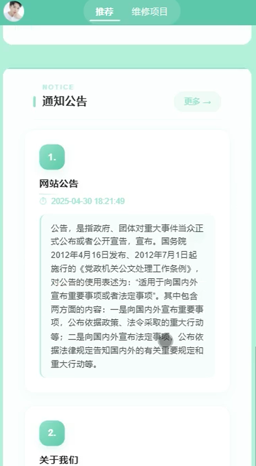 管理员可以发布、编辑、删除通知公告,确保用户能够及时获取平台的最新信息。管理员还可以查看公告的浏览次数和用户反馈,以便更好地调整公告内容。其界面图如下。