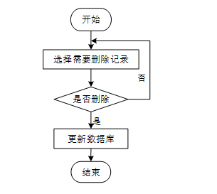用户选择需要删除的记录后,系统判断是否确认删除。若未确认,返回选择环节;若确认删除,则更新数据库,删除对应记录,完成操作后流程结束。删除信息流程图如图4-5所示。