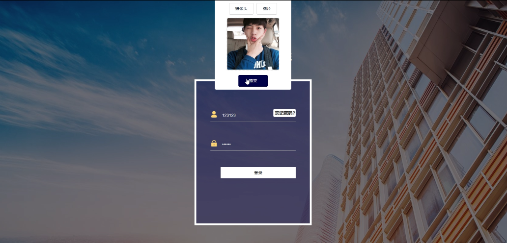 - 登录:提供登录功能,输入账号密码可登录系统后台,实现人脸识别,支持摄像头和上传图片进行识别(识别失败时提示重新采集)。