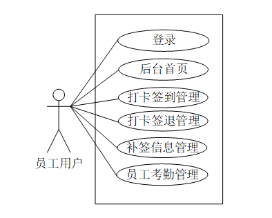 人脸识别考勤系统员工用户角色用例图如下所示。